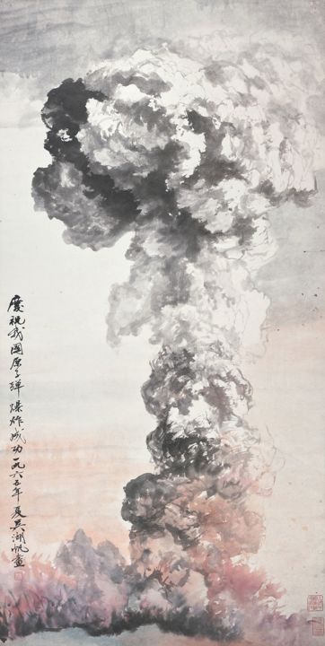 吴湖帆《庆祝我国原子弹爆炸成功》纸本设色,135×67cm,1965年,上海中国画院藏